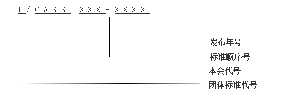 (二)本会团体标准编号由团体标准代号(T/)、本学代号(CASS)、标准顺序号(从001开始,按时间顺序连续编号)和发布年号组成。其编号规则如下:
